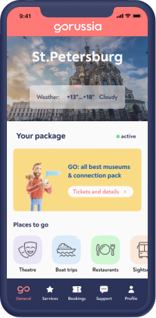 Exclusive access to the best city attractions: Peterhof Palace and Park, Tsarskoe Selo and many others. Unlimited Internet and mobile communication, as well as a transport card for any trips around the city